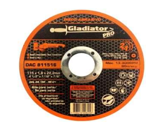 El disco de corte delgado Gladiator GLA-811512 de 4 ½” cuenta con un espesor de 1 mm y orificio de 7/8”, tipo T-01, ideal para cortes finos y precisos en metal. Su diseño delgado garantiza mayor velocidad y menor desgaste, optimizando el rendimiento en cada uso.