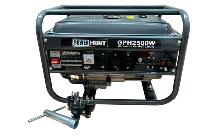 El generador a gasolina POWERHUNT PAR-GPH2500W cuenta con un motor de 4 tiempos y 6.5 HP que ofrece una potencia de 2.5 kW. Funciona a 110/220 V y dispone de encendido manual, ideal para suministrar energía confiable en hogares, talleres o actividades al aire libre.