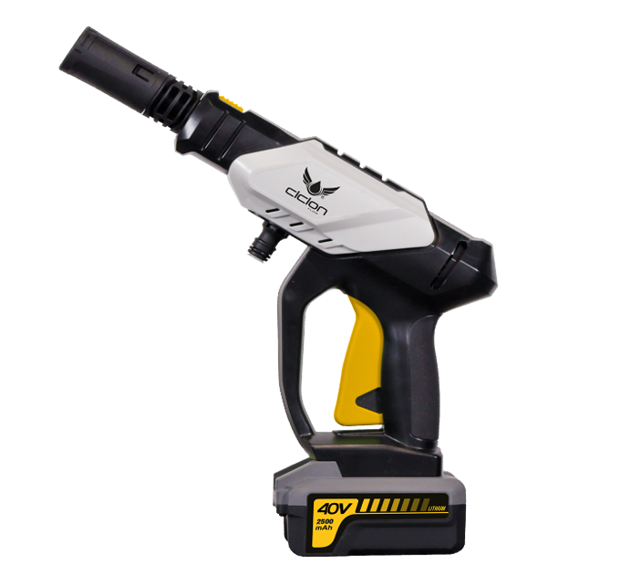Hidrolavadora a batería CICLON CIC-HEB35 tipo pistola, con motor de 300 W y presión máxima de 435 PSI, ideal para limpiezas rápidas y portátiles. Funciona con batería de 40 V, ofreciendo un flujo de agua de 3.0 L/min, perfecta para lavar vehículos, herramientas y superficies sin necesidad de conexión eléctrica directa.