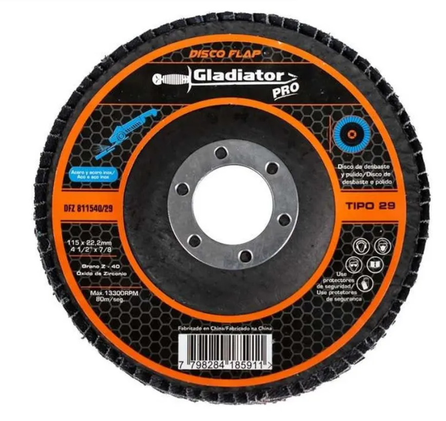 El disco laminado Gladiator GLA-811540 de 4 ½” con grano 40 es ideal para desbaste y lijado agresivo de metal, acero y otras superficies. Ofrece alta remoción de material, gran durabilidad y un acabado uniforme, optimizando el rendimiento en trabajos de preparación y pulido.