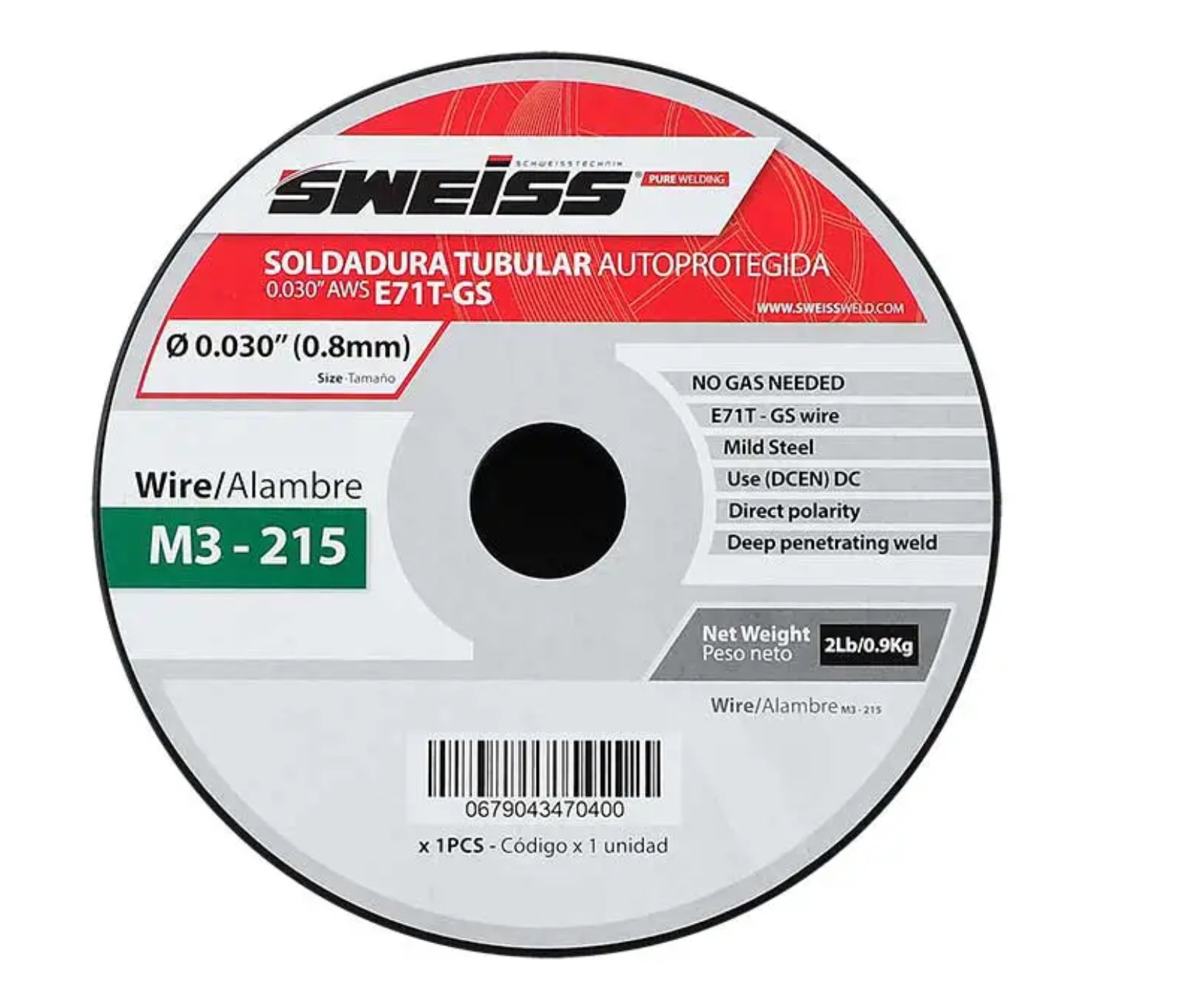 El rollo de microalambre SWEISS SWS-M3-215 de 1 kg y diámetro de 0.030” está diseñado para soldadura sin gas, ofreciendo un rango de amperaje de 40 A a 120 A. Brinda un arco estable, buena penetración y acabados limpios en trabajos de mantenimiento y fabricación.