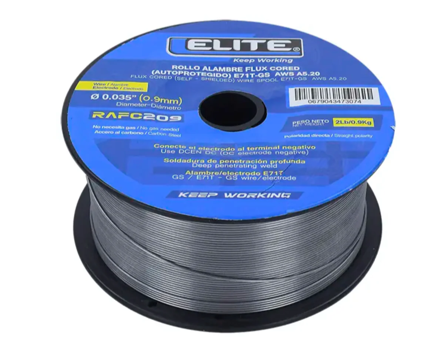 El rollo de microalambre flux ELITE ELI-RAFC209 de 1 kg y diámetro de 0.035” está diseñado para soldadura sin gas, con un rango de amperaje de 40 A a 120 A. Ofrece arco estable, penetración uniforme y acabados limpios, ideal para trabajos de mantenimiento y fabricación.